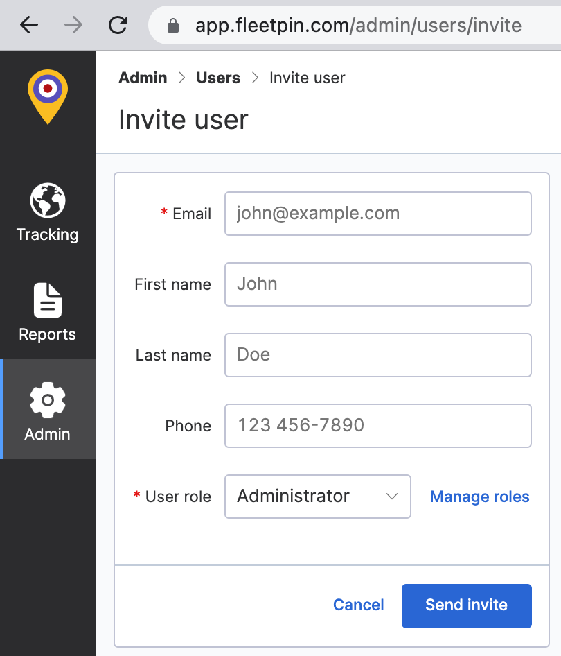 Tip - An invited user will receive an email to access your Fleetpin account. This email is only valid for 48 hours. If the invite hasn't been accepted within 48 hours, you will need to complete the above steps again. You can also edit their User Permissions again even after you initially send the invitation.